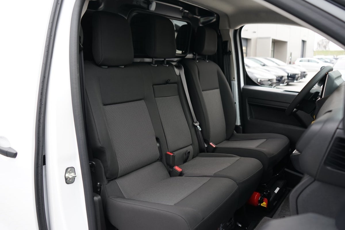 Siddeplads til tre – kør grønt uden kompromis!Proace City Electric er den perfekte varebil til dig, der vil kombinere rummelighed, komfort og miljøvenlig kørsel. Med tre fulde sæder foran får både dig og dine kolleger en behagelig arbejdsdag – uden at gå på kompromis med pladsen bagi.